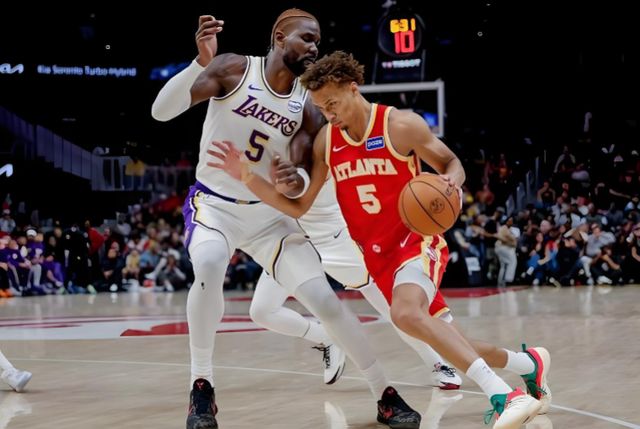回看本場(chǎng)比賽,五連勝的湖人在比賽一開(kāi)始似乎就沒(méi)有了前幾場(chǎng)的勢(shì)頭,反觀老鷹一方,沒(méi)有特雷楊、沒(méi)有波神、沒(méi)有杰倫·約翰遜、沒(méi)有亞歷山大·沃克、沒(méi)有肯納德,就這樣一支殘陣?yán)销棧炊虺隽巳σ愿暗木置妗?/p>